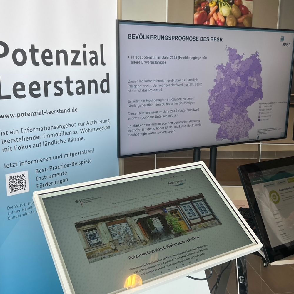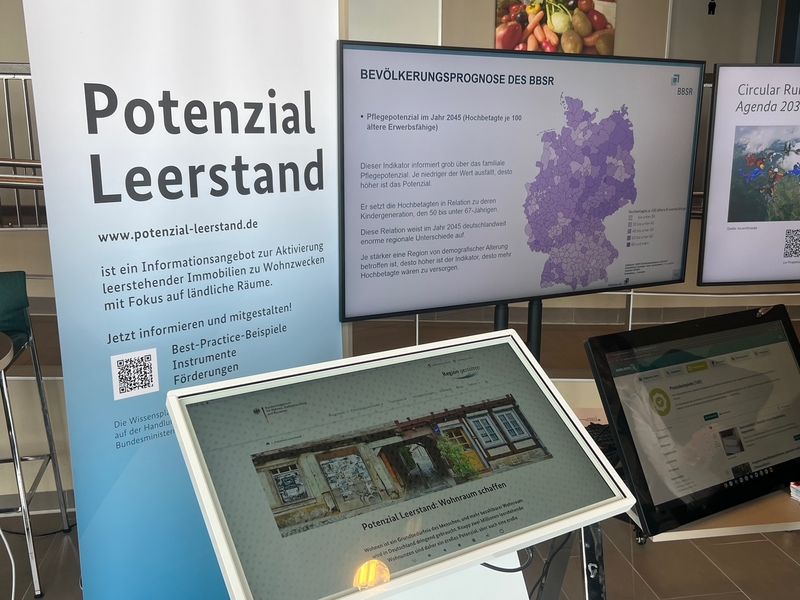 Außerdem wurde mit einem interaktiven Stand die von Institut Raum & Energie mit weiteren Projektpartnern erarbeitete Online-Plattform „Potenzial Leerstand“ präsentiert – ein praxisnahes Informationsangebot, das Beispiele und konkrete Hilfestellungen zur Aktivierung leerstehender Immobilien zu Wohnzwecken bereitstellt.